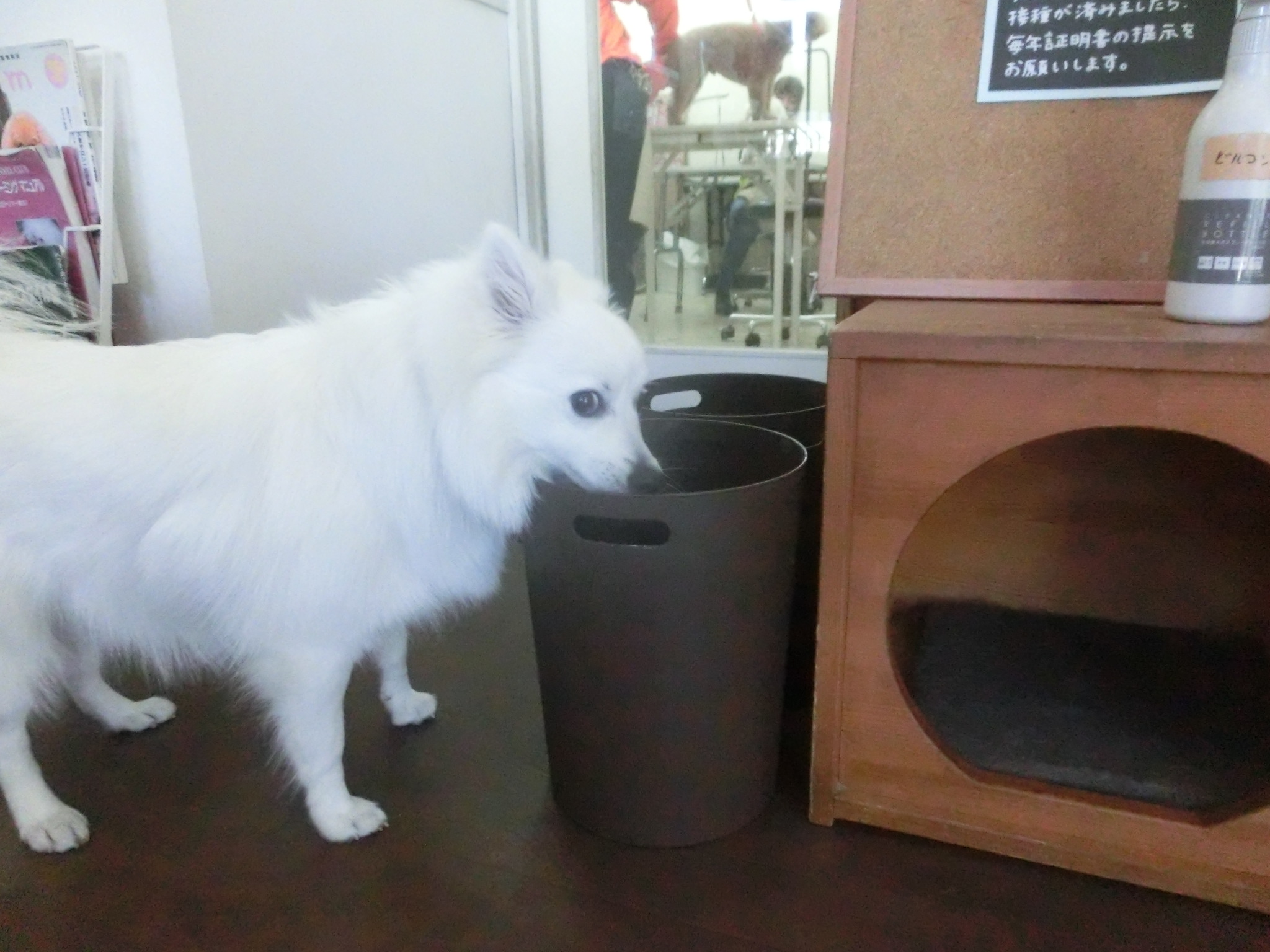 ゴミ箱に顔を突っ込んでいました。。。