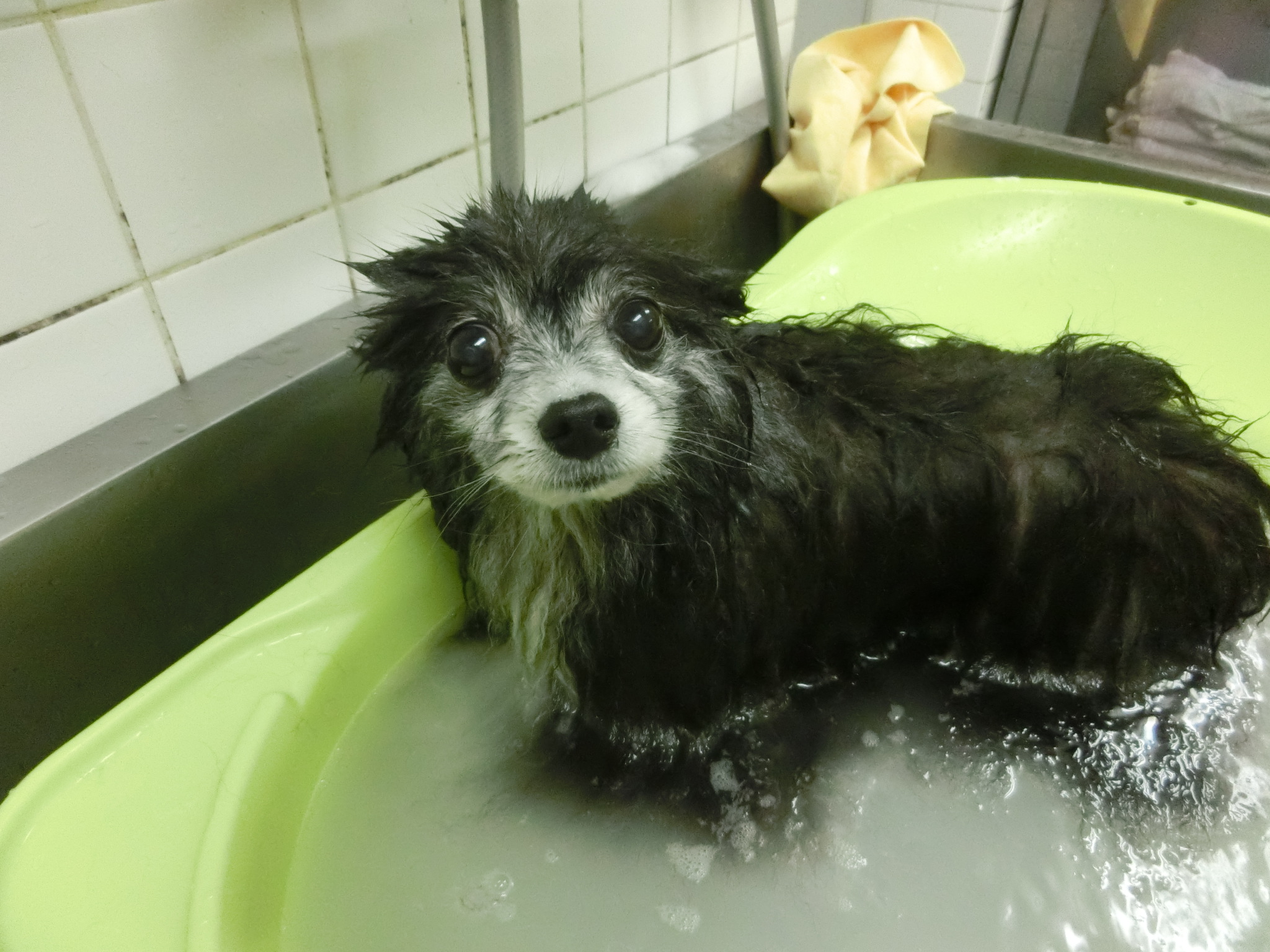 マイクロバブルに浸かって気持ち良さそうなマルちゃん!!