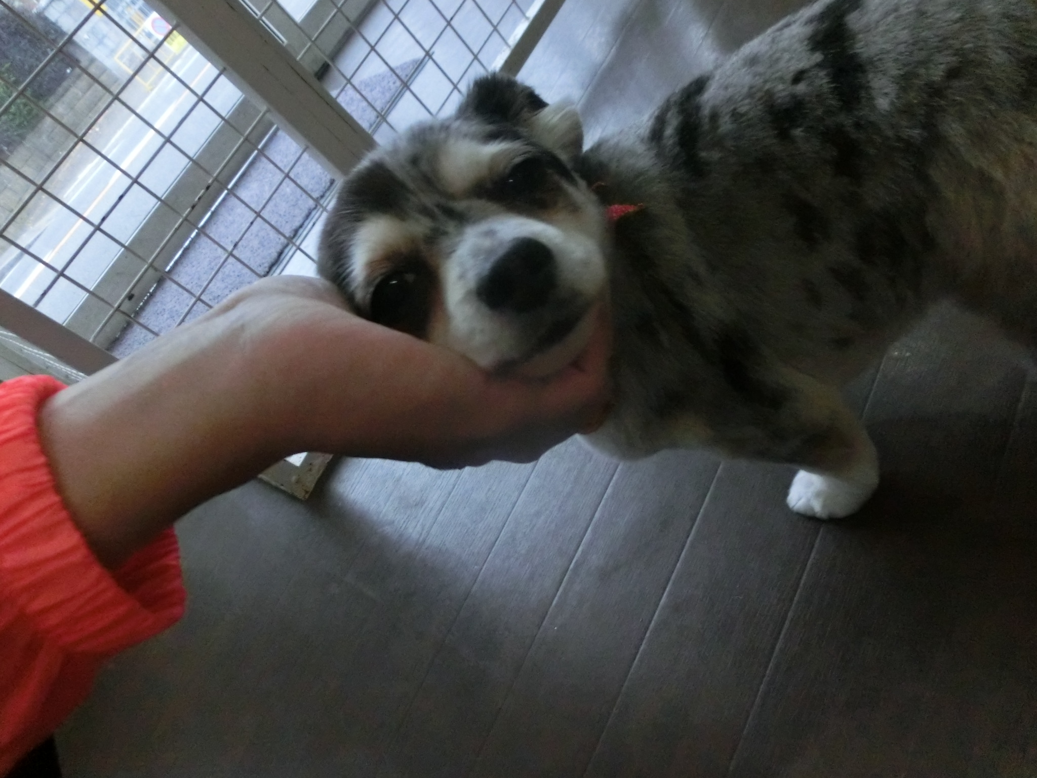 立ち上がると「もっと撫でてよ~」と脚に掴まって来ます(^_-)-☆