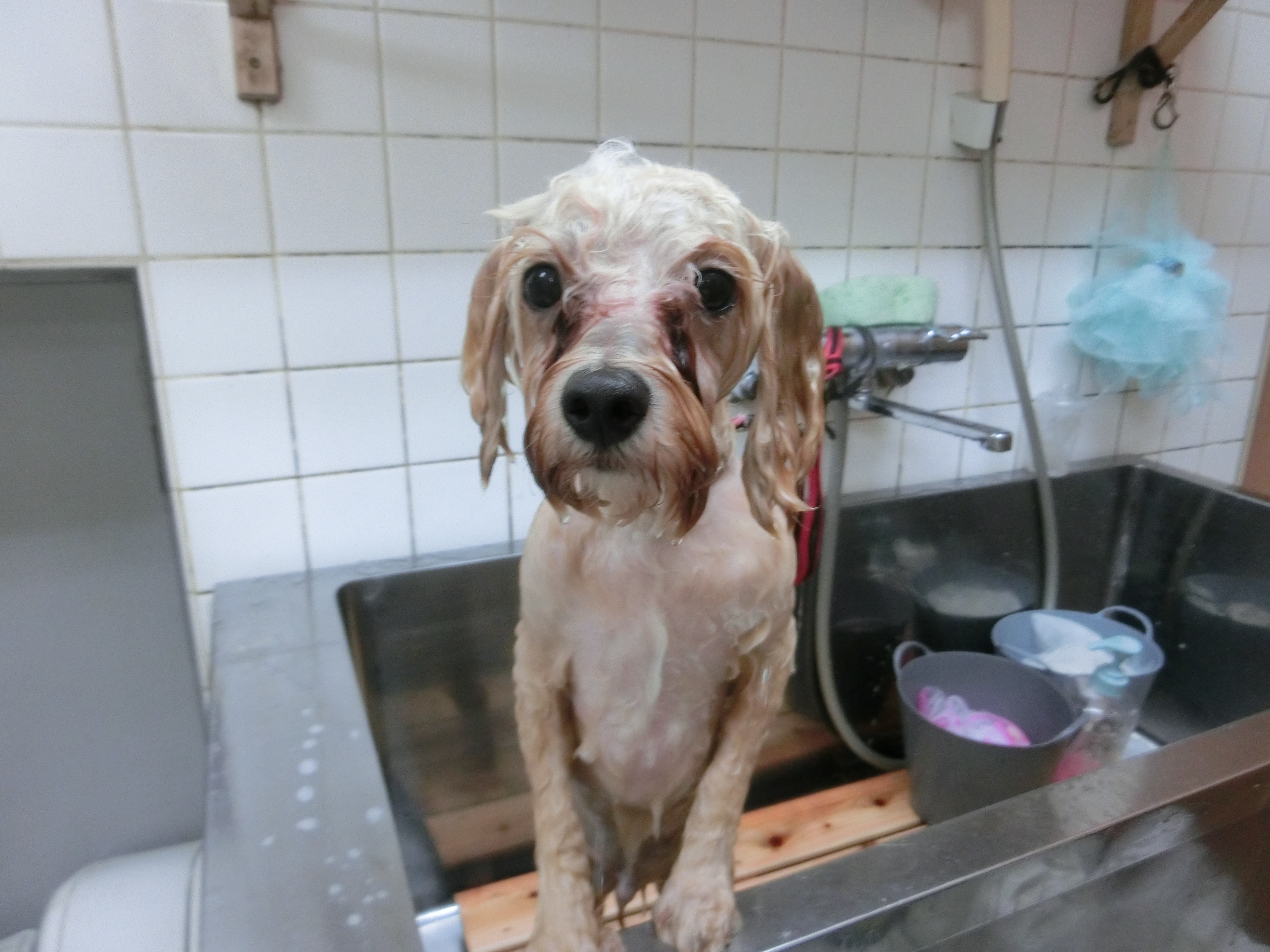 パピーシャンプーで洗ってお肌のケアも完璧なモコちゃん♥