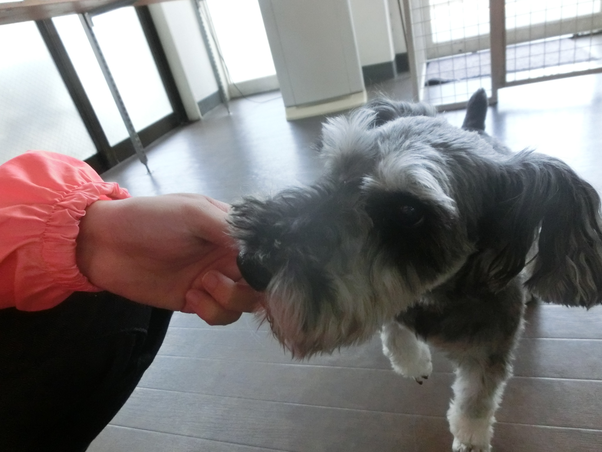「遊ぼうよ~」と手に両手でお手してくれています( *´艸`)