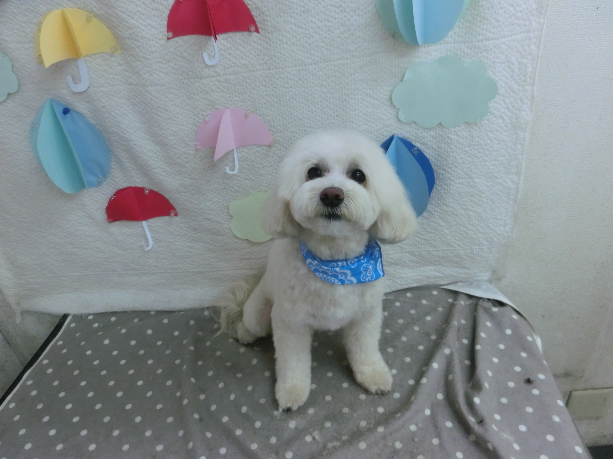 ホテル中にトリミングしたマシュちゃん✿