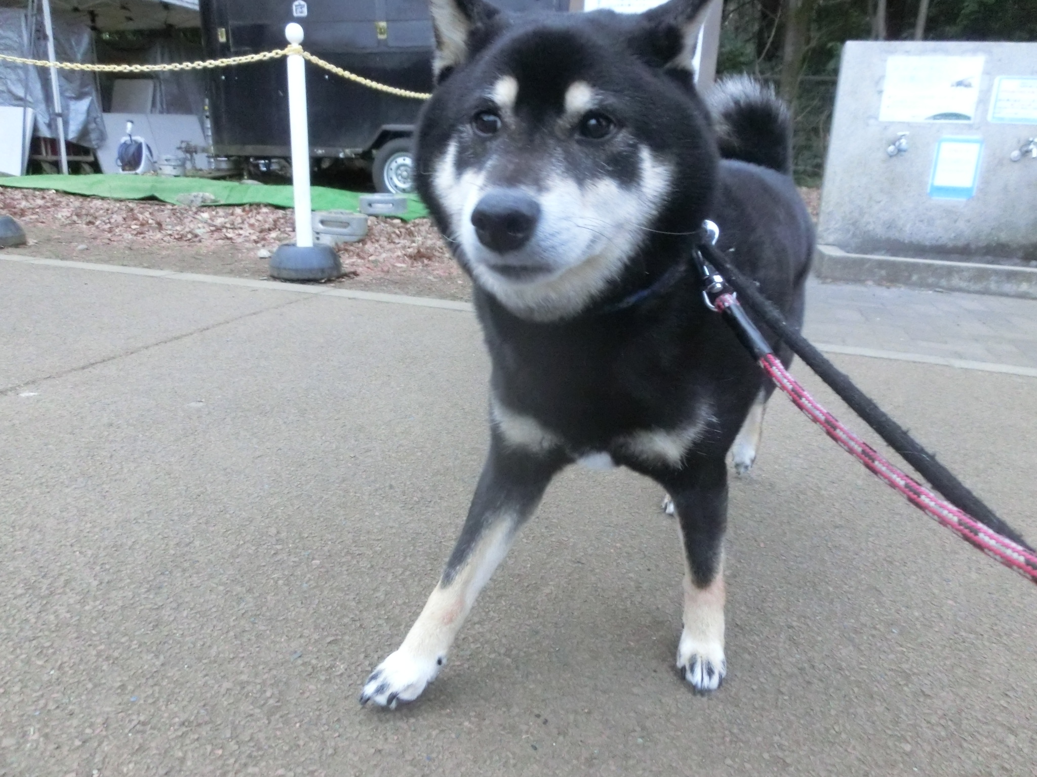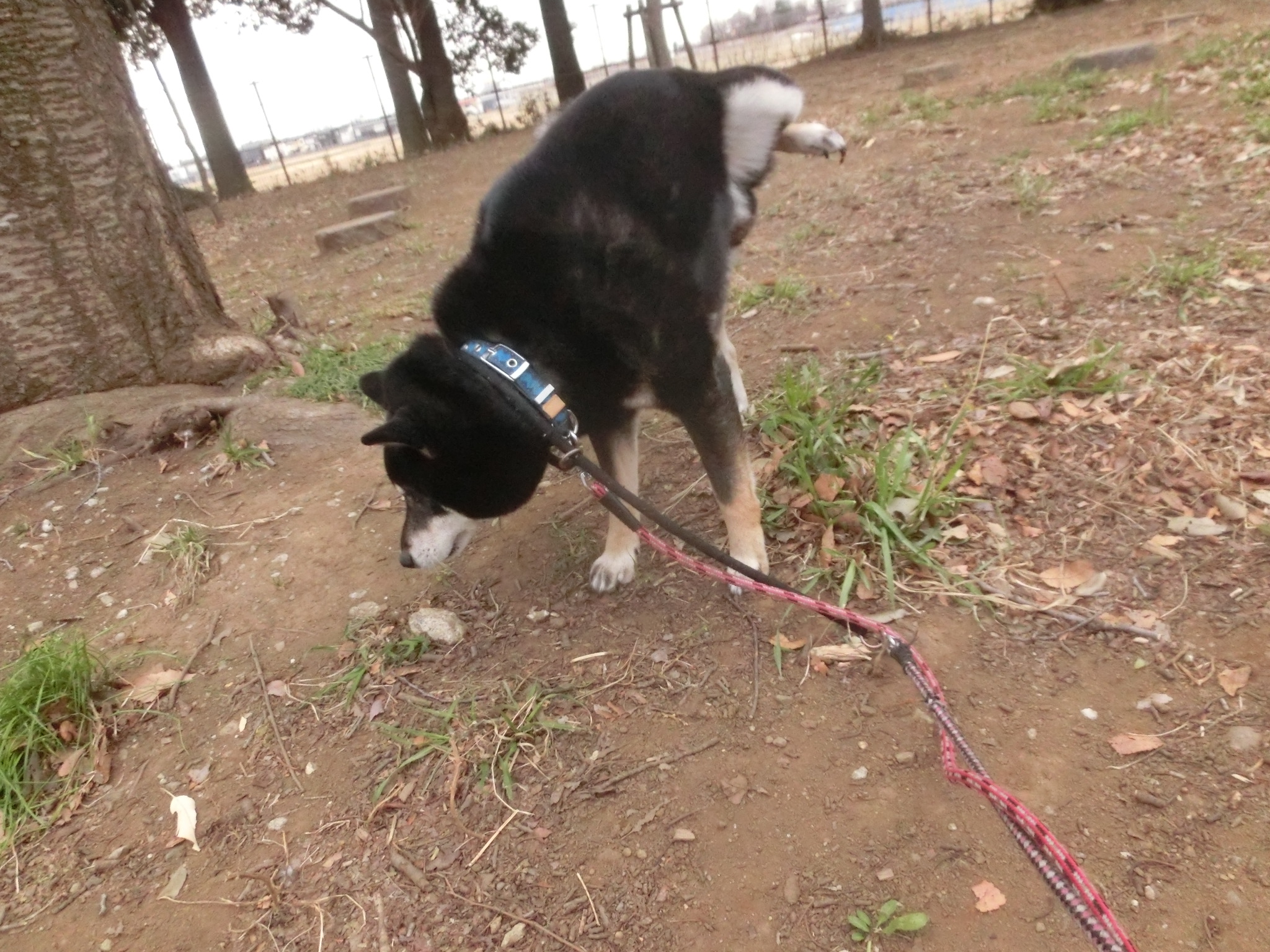 散歩中、わんちゃんに会うたびにクルクル回って吠えていました。。。