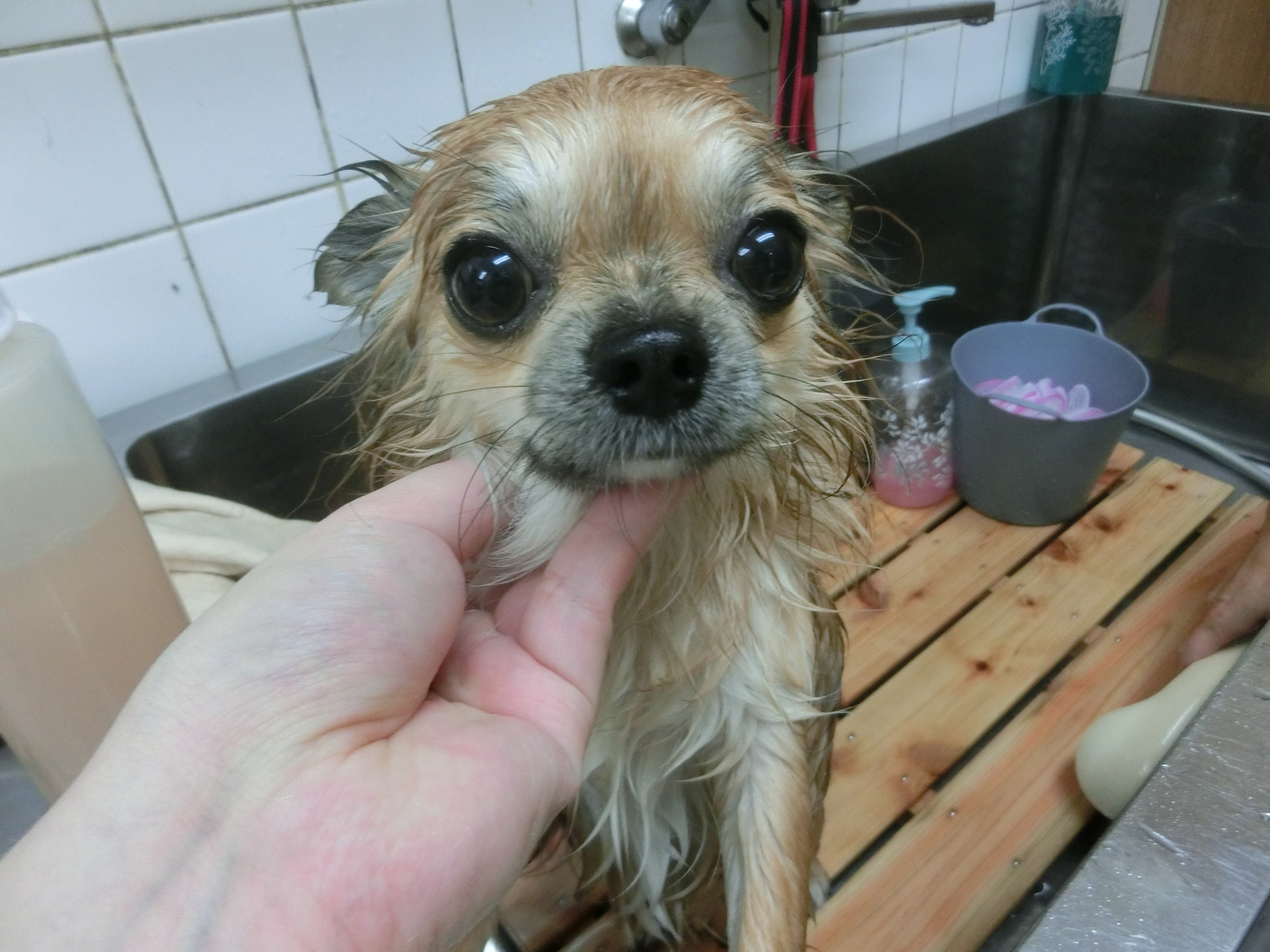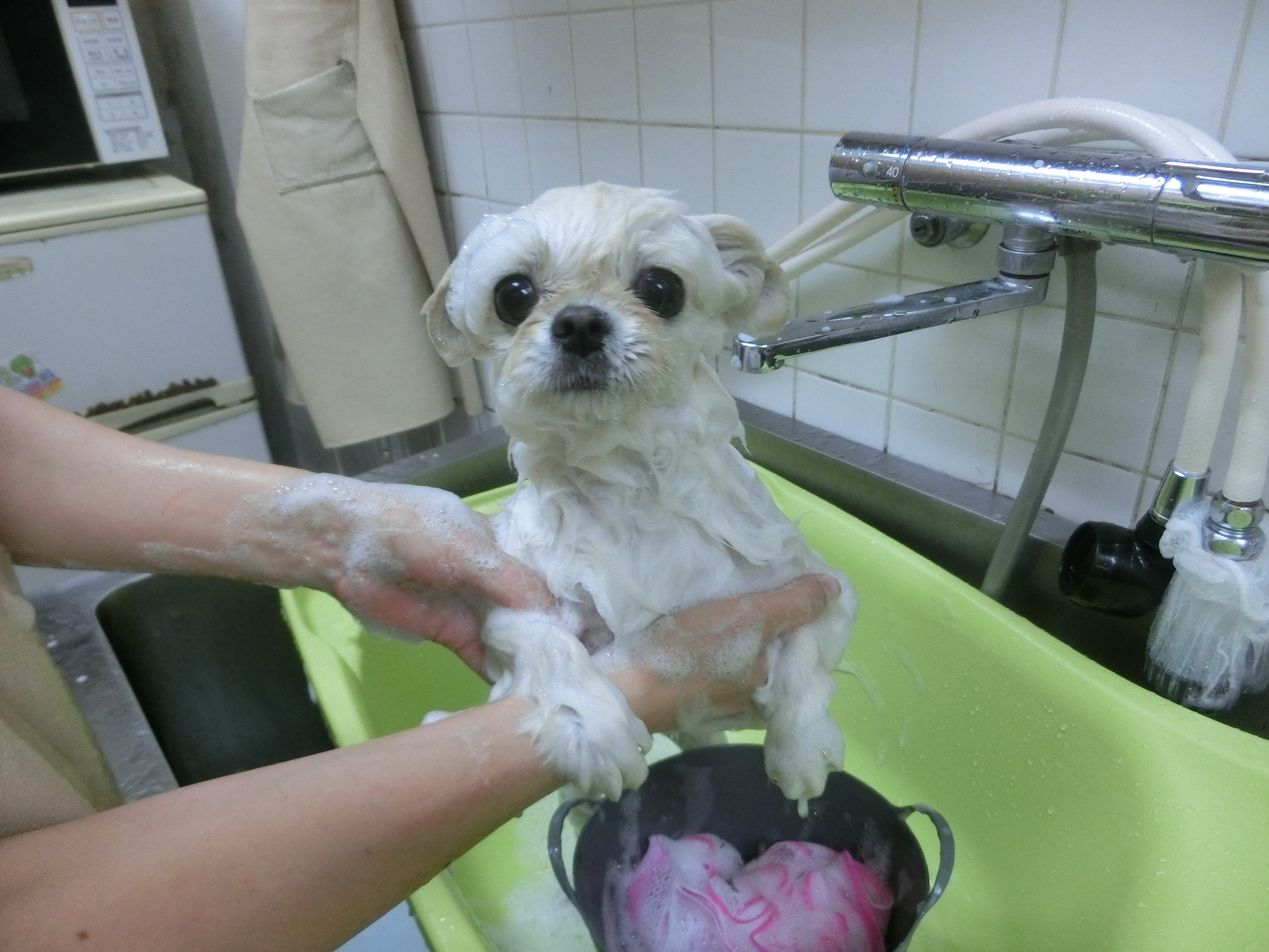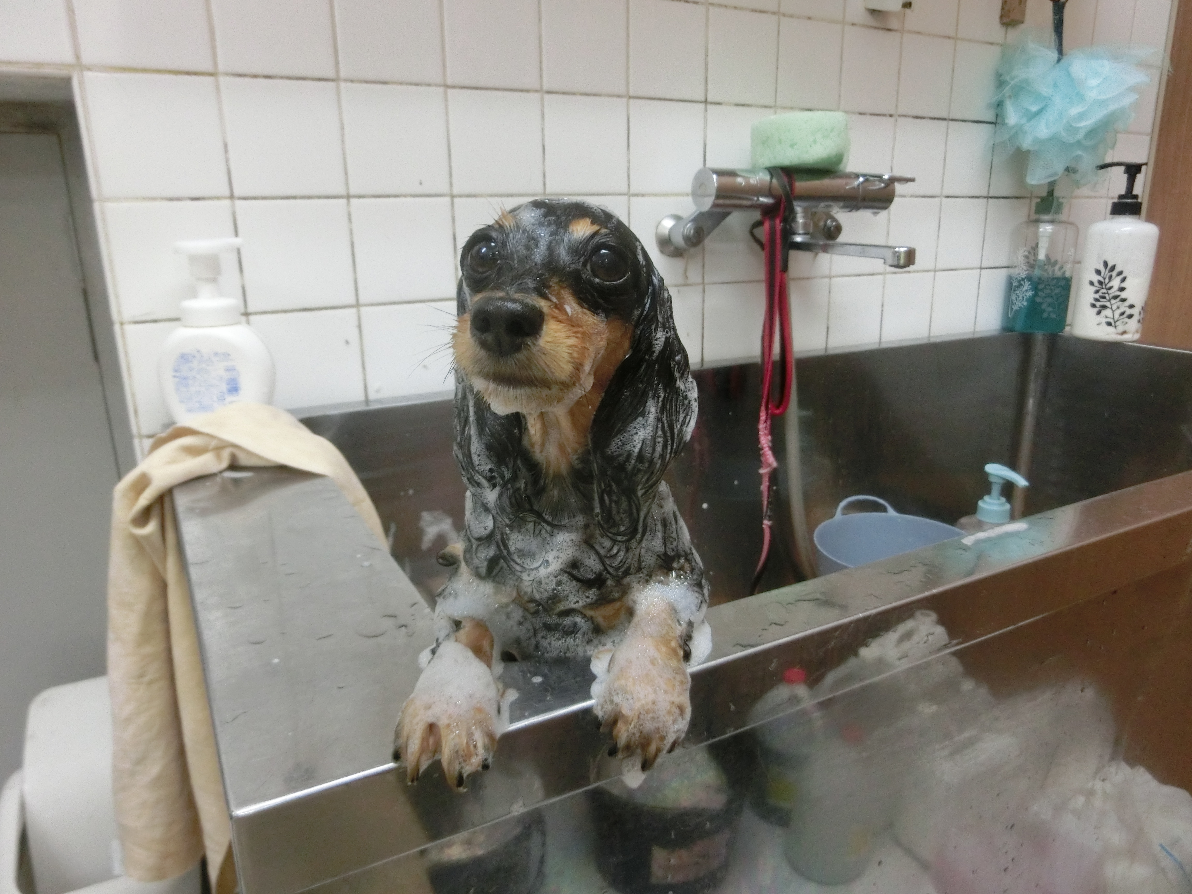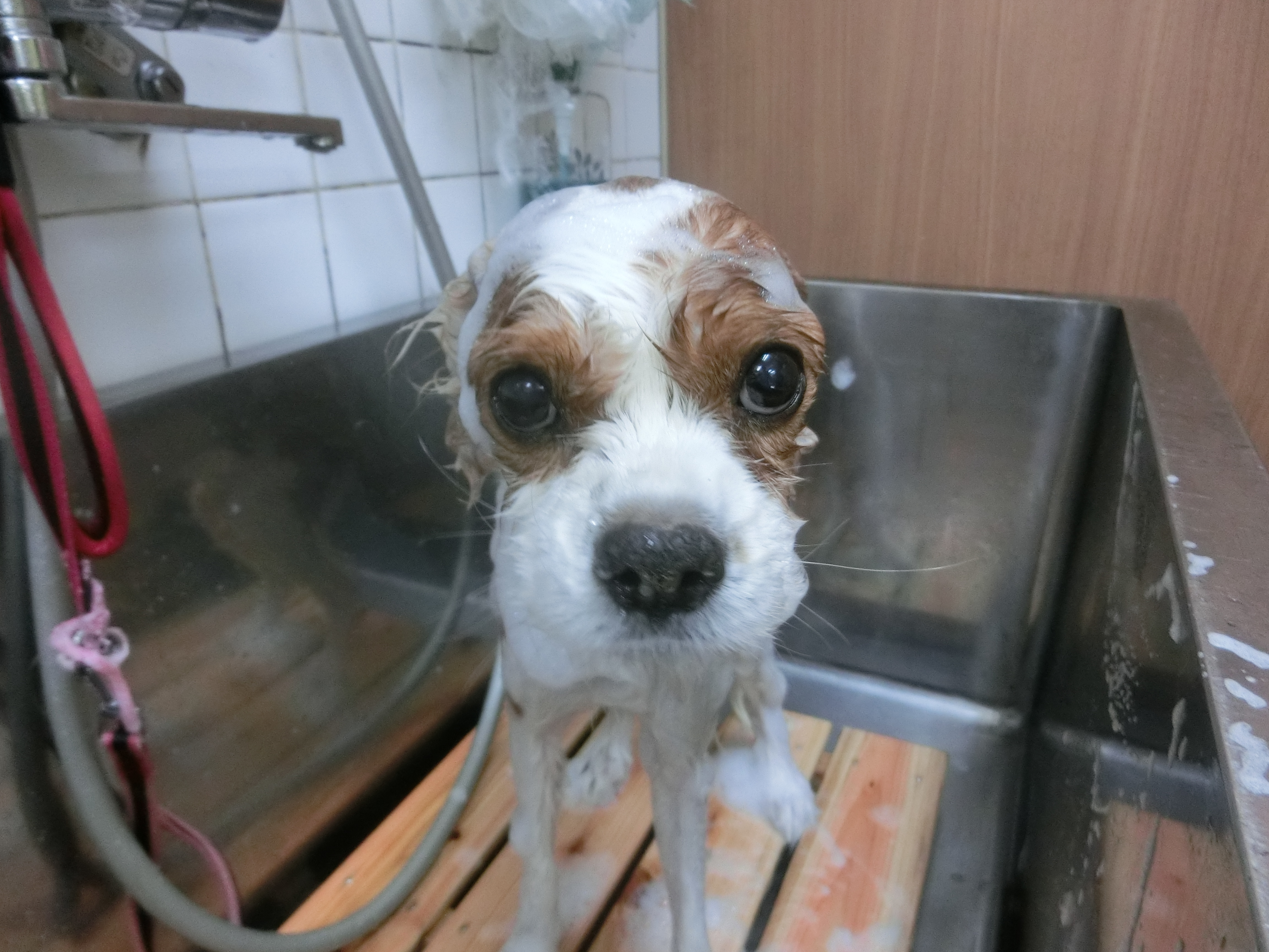 シャンプー中もカメラ目線バッチリです(^O^)