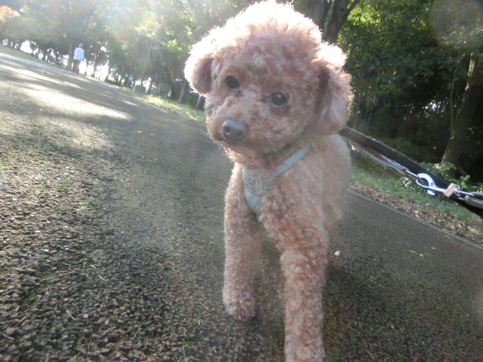 楽しそうに歩くのですが、カメラを向けるとテンション⤵