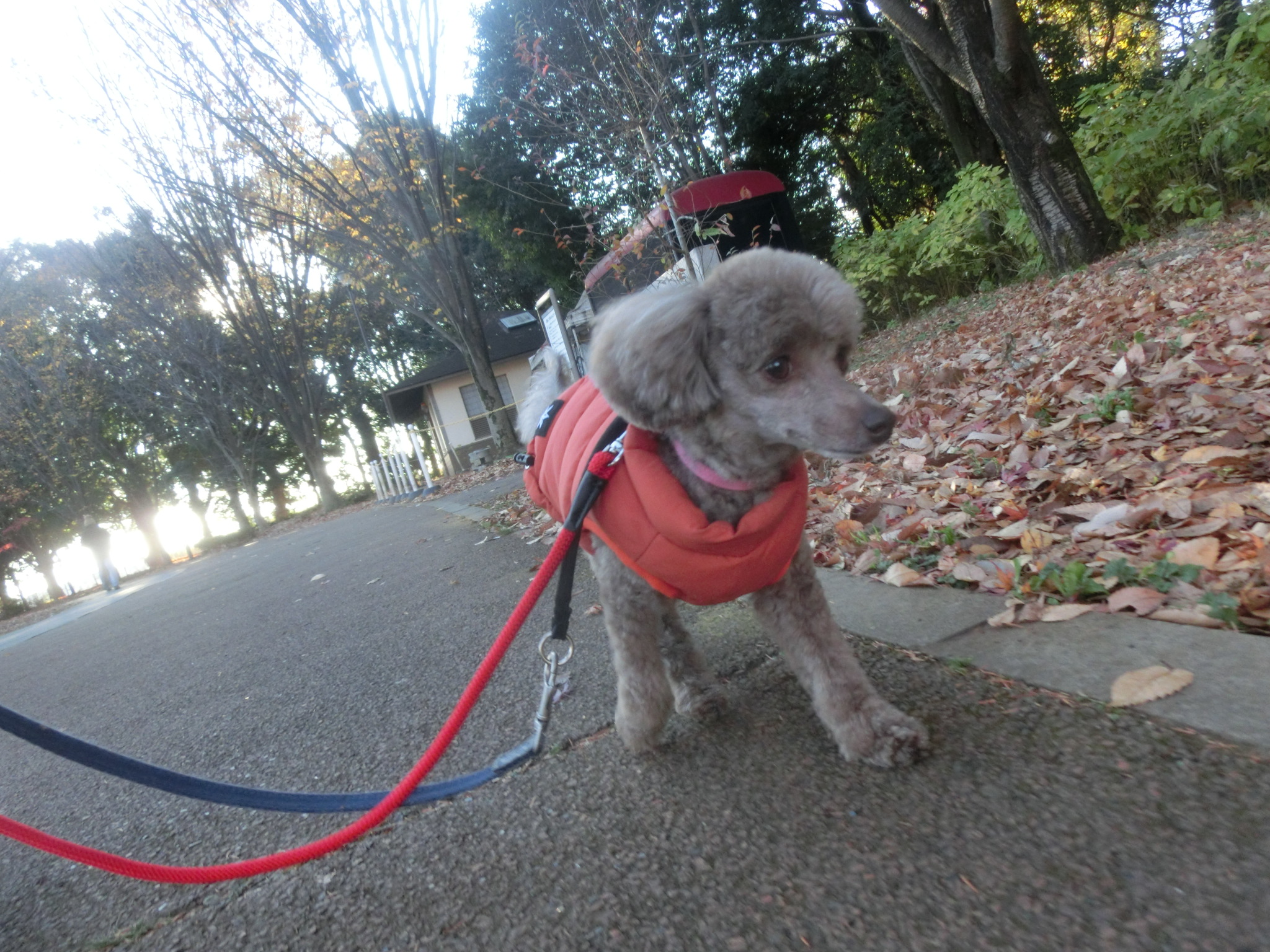 公園に向かう途中でかがんでおしっこ。
