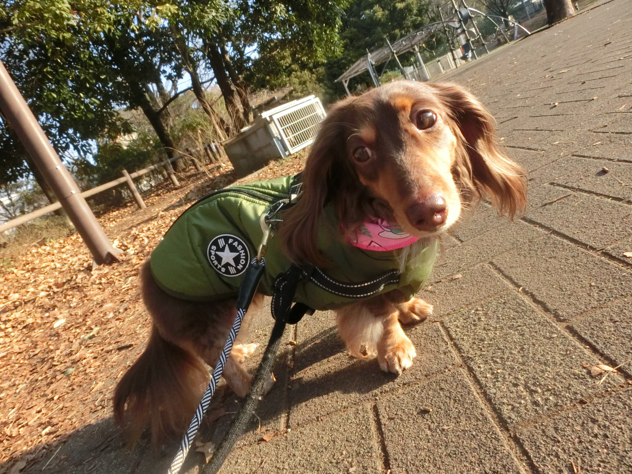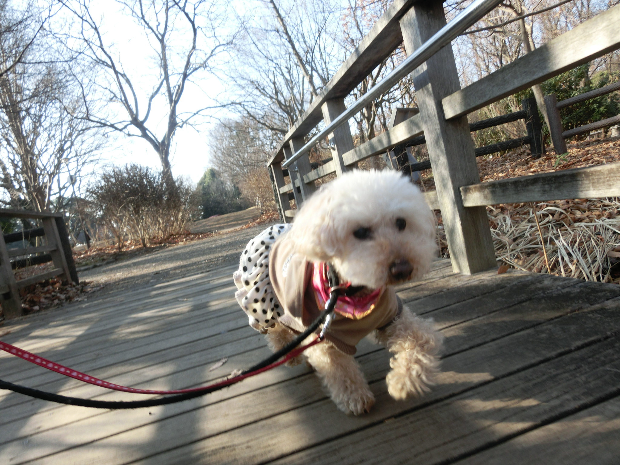 公園に入るのを少し嫌がっていましたが