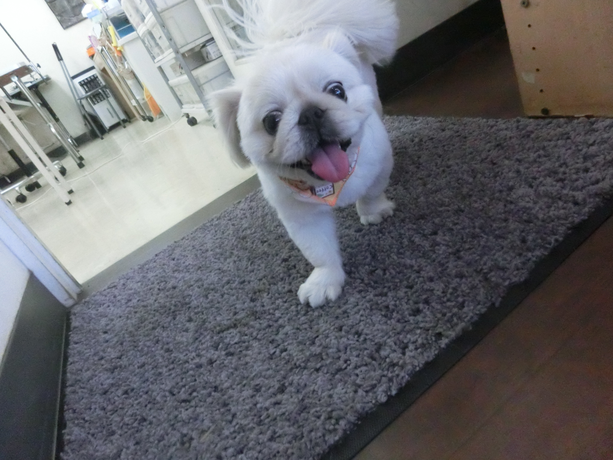 今はトリミング室のお部屋でのんびりしています。