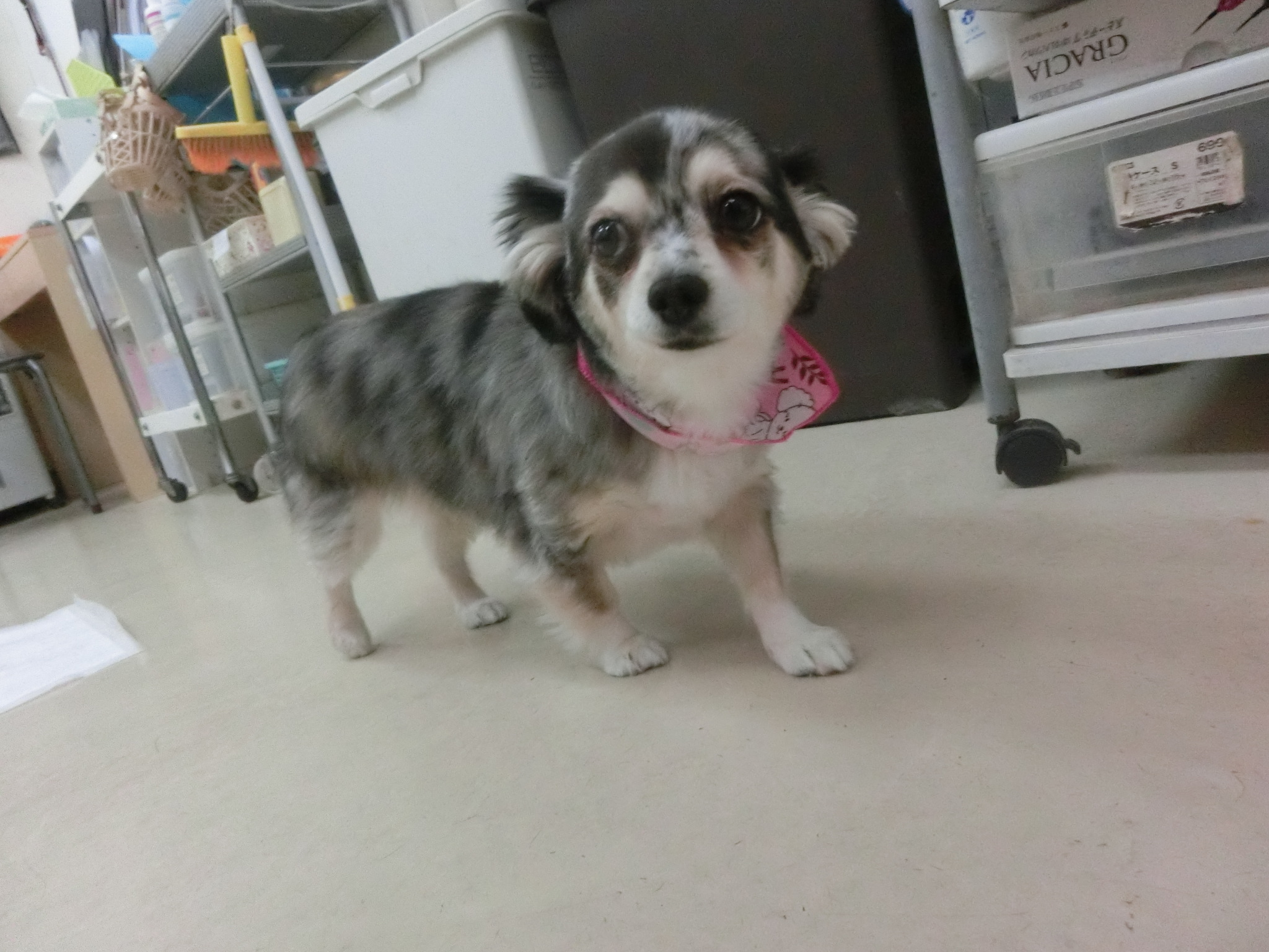 今日もトリミング室でのんびり過ごしそうな感じのすずちゃん。