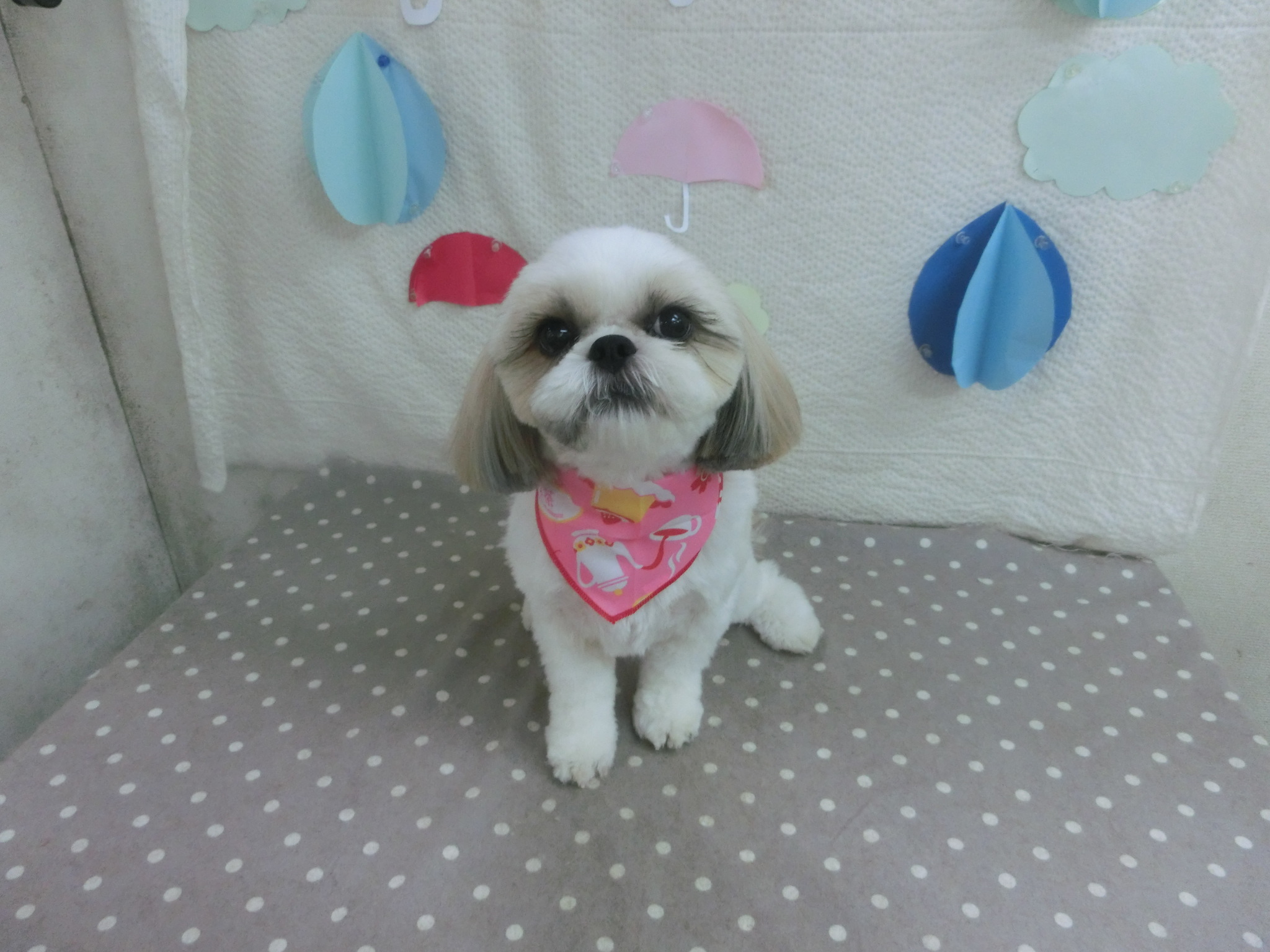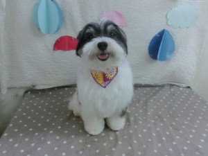 お顔のカット中はじっとおすわりしていました♬