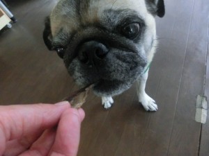 固いササミのおやつは遊びながら食べていました。。。