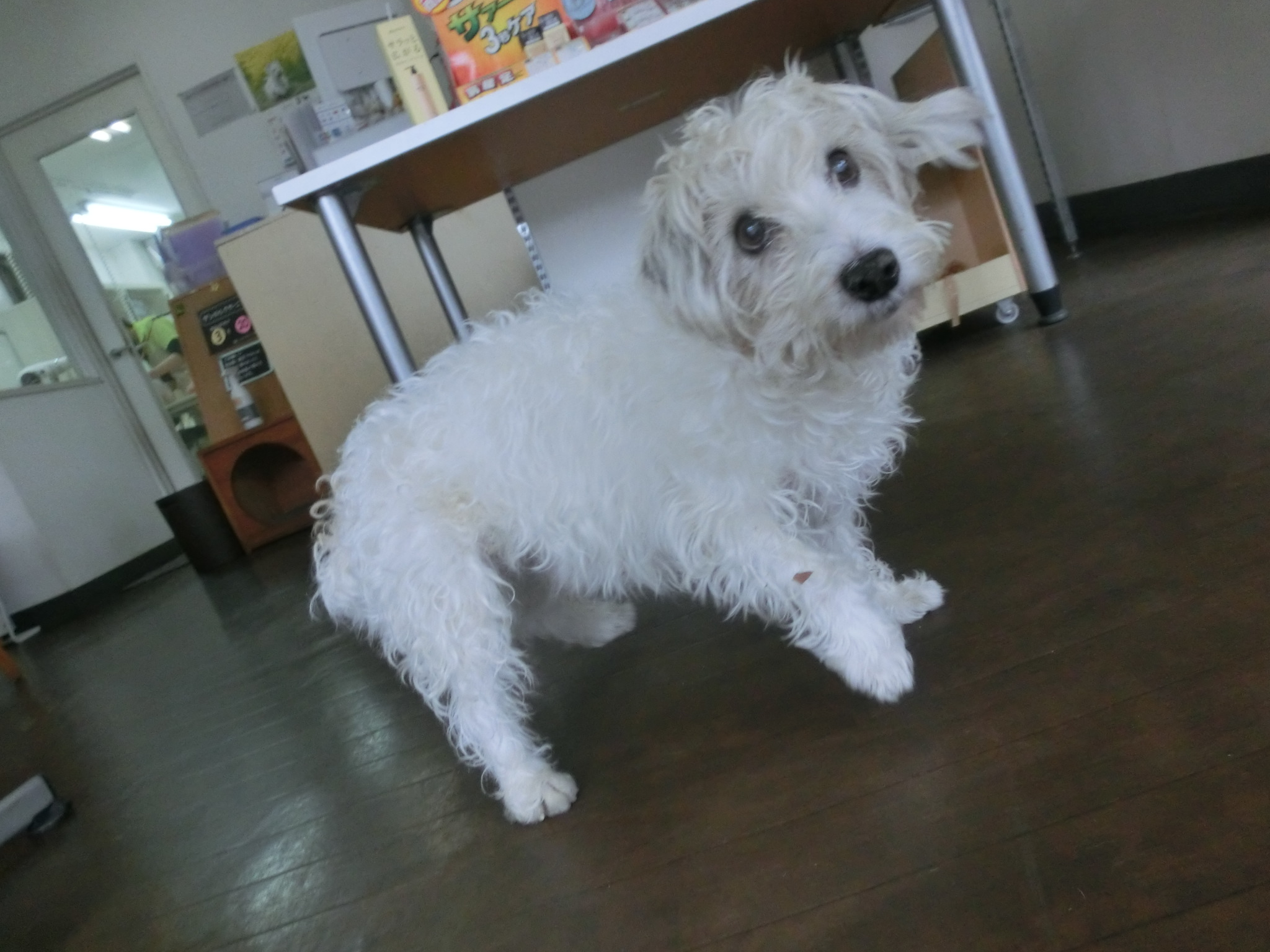 先ほど来てくれたモコちゃんはなぜかトリミング室に入りたがります。。。