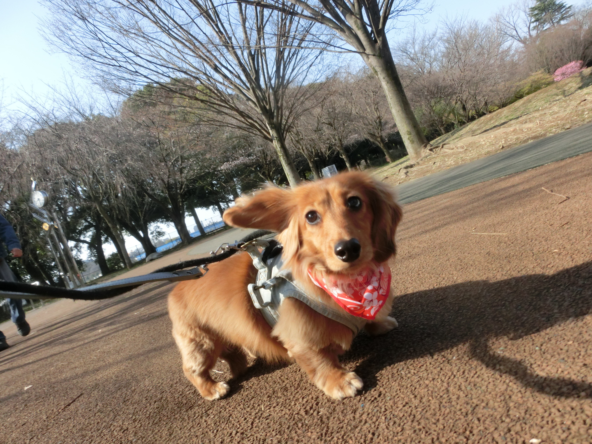 長いリードなら走らせてあげられるのですが・・・