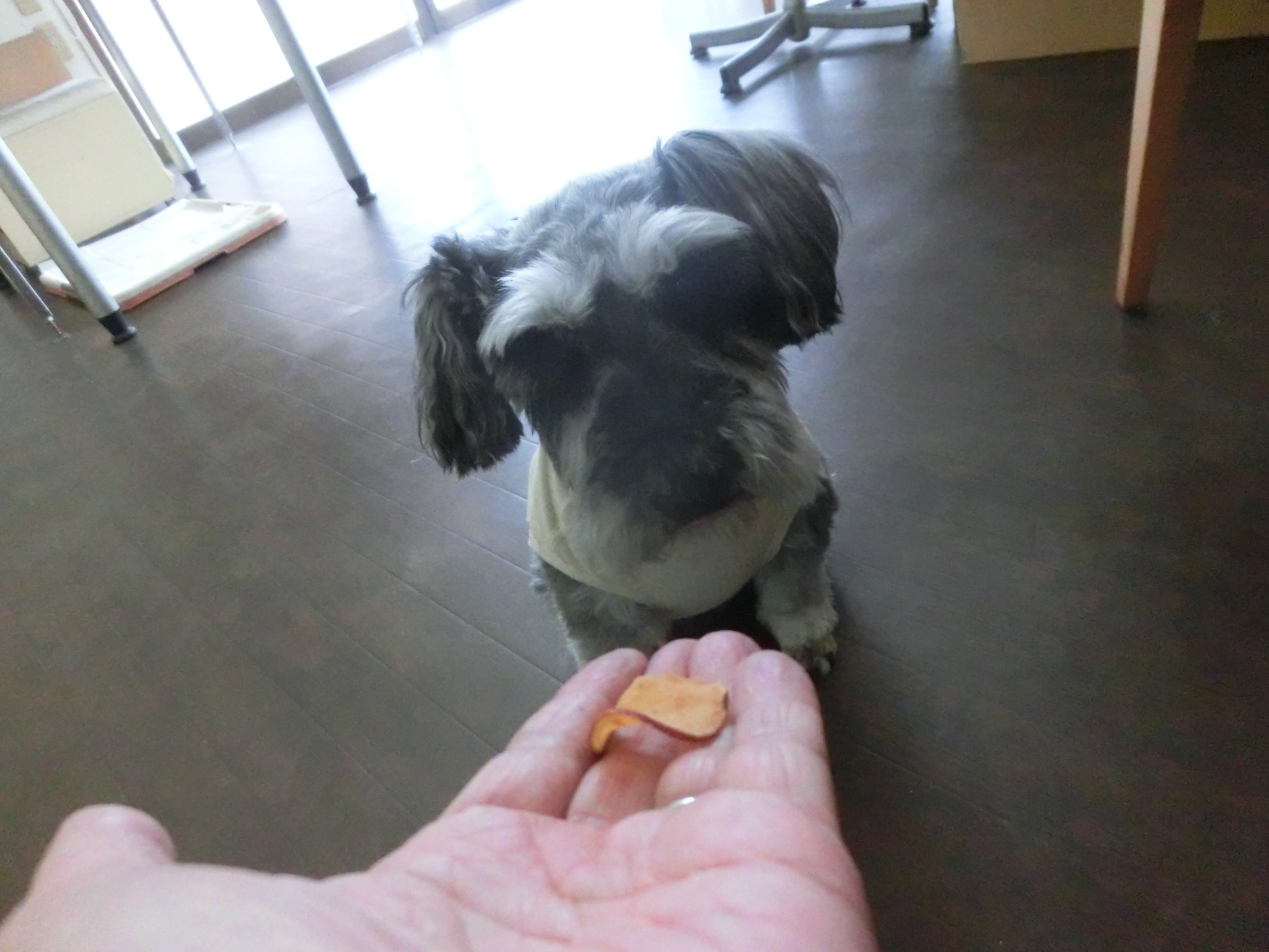 「まて」が出来るのですが、シャッター音を「よし」と思ってパクリ。。。