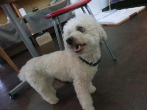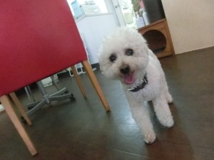トリマー達が出勤してくると横にちょこんと座っていました(*’ω’*)